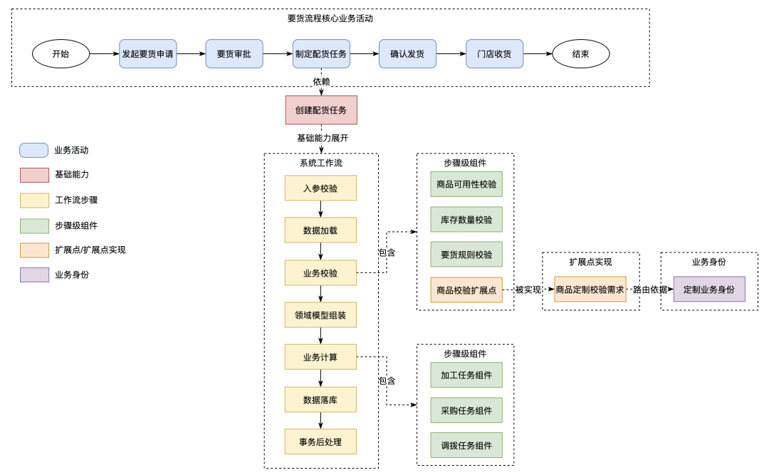 基础能力是对领域对象的原子操作,是可复用的最小能力单元,扩展点是对基础能力的可变性设计,而业务身份是业务能力在业务平台上的唯一标识。