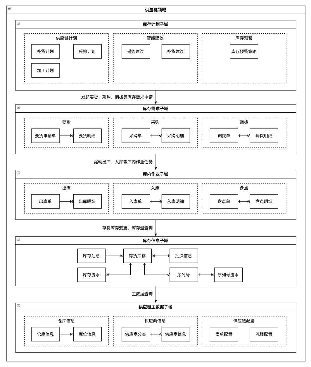 在DDD理论中,领域模型包含限界上下文、领域实体、聚合、值对象、领域事件、仓储、应用服务、领域服务等,以及它们间的关系。
