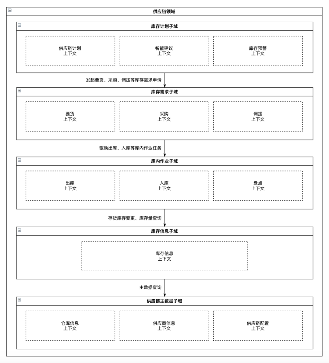 在业务分析环节,我们需要分析业务流程、业务活动,根据业务目标的相关性、耦合关系,对业务活动进行归类分组,划分出一个个的边界,这个边界就是限界上下文。