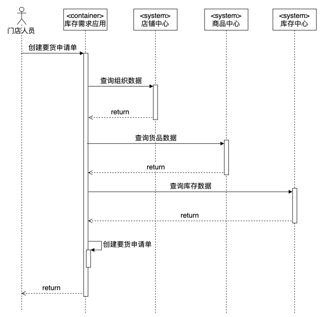 容器级交互时序图是一种流程建模,描述了应用容器之间的交互顺序,将交互行为建模为消息传递,通过描述消息是如何在应用容器间发送和接收,来动态展示它们之间的交互。相对于其他UML图,时序图更强调交互的时间顺序,可以直观的描述交互的过程。